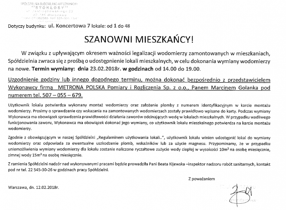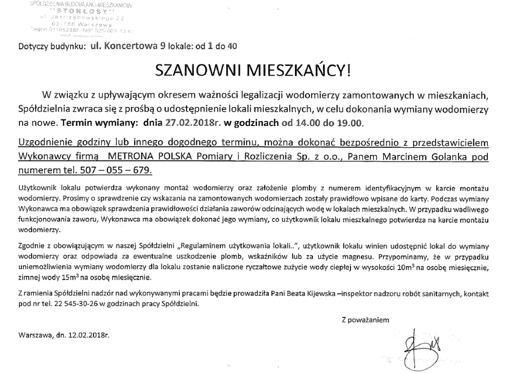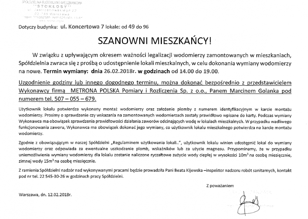 SZANOWNI MIESZKAŃCY!