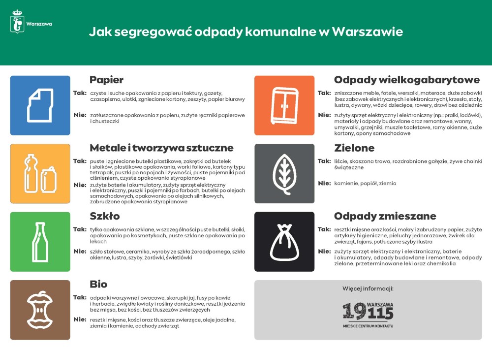 Zarząd Spółdzielni Budowlano-Mieszkaniowej STOKŁOSY uprzejmie przypomina, że w Warszawie obowiązuje system selektywnej zbiórki odpadów komunalnych z podziałem na:
