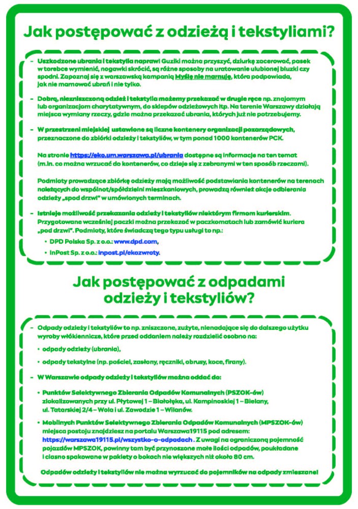 Jeśli odzież i tekstylia są zniszczone i nie nadają się do dalszego wykorzystania, oddaj je do PSZOK