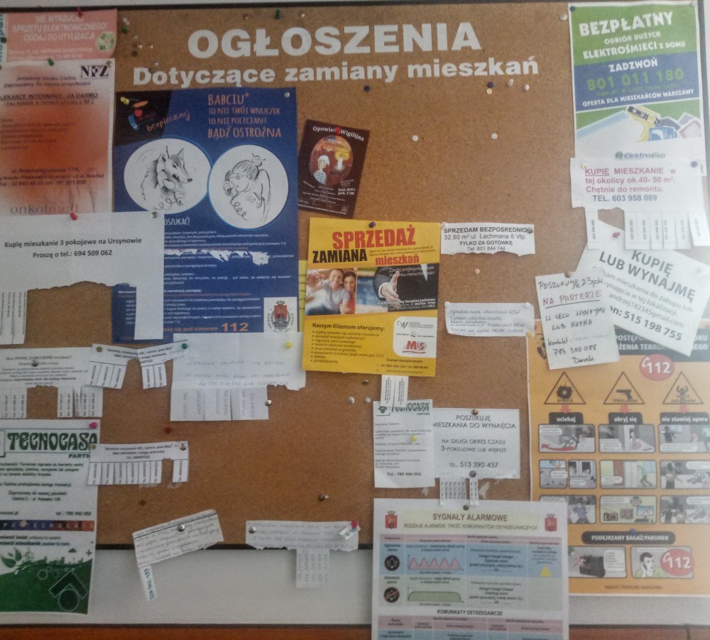 Informujemy mieszkańców, iż w holu budynku Spółdzielni przy ul. Jastrzębowskiego 22 znajduje się ogólnodostępna tablica ogłoszeniowa, na której można wywieszać oraz czytać ogłoszenia dotyczące zamiany mieszkań na terenie naszej Spółdzielni.