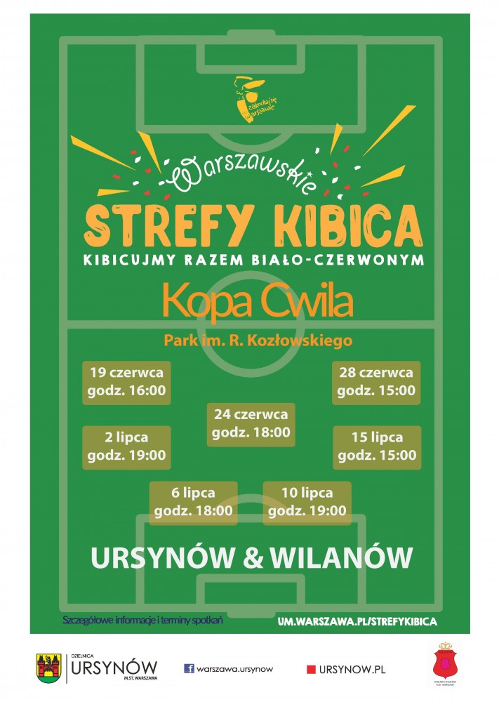 Serdecznie zapraszamy naszych mieszkańców wraz ze swoimi pociechami do oglądania dzisiejszego mundialowego meczu Polska - Kolumbia w strefie kibica na Kopie Cwila. Strefa startuje dziś od godz. 18.00, a jej organizatorem jest Urząd Dzielnicy Ursynów.