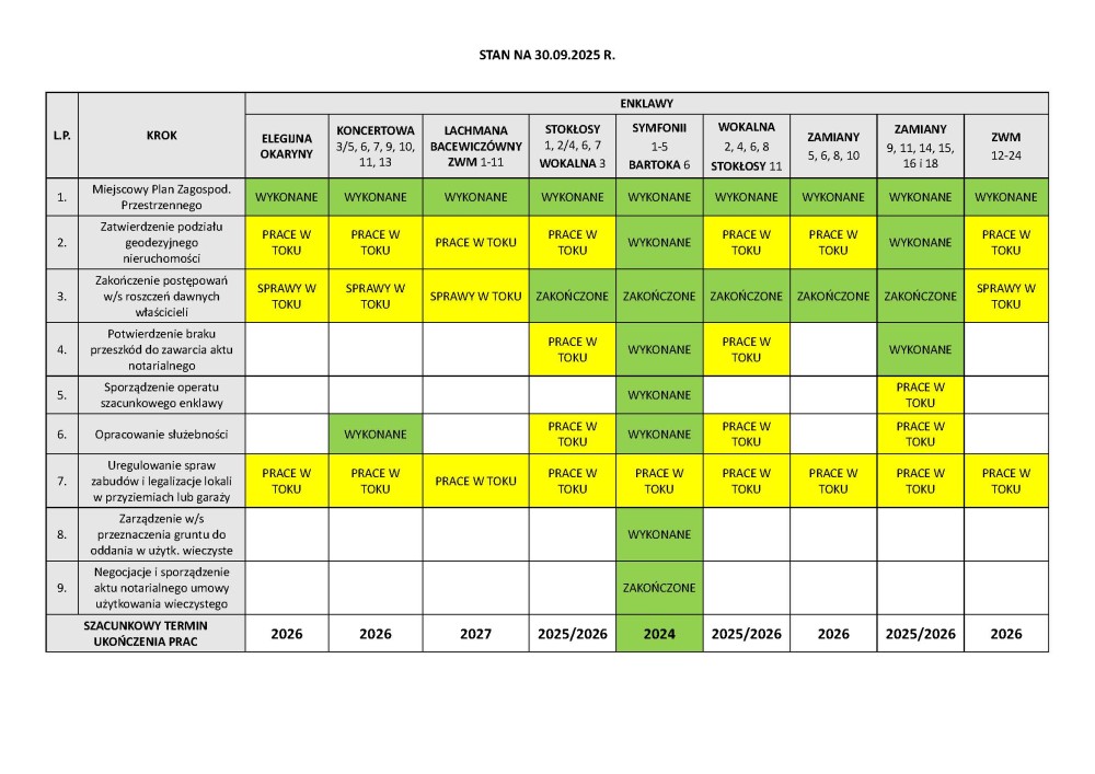 Informacja o regulacji gruntów w enklawach, stan na 30.09.2025r.
