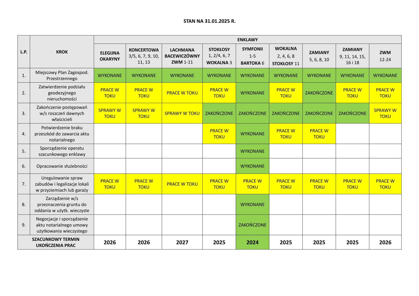 Informacja o regulacji gruntów w enklawach, stan na 31.01.2025r.