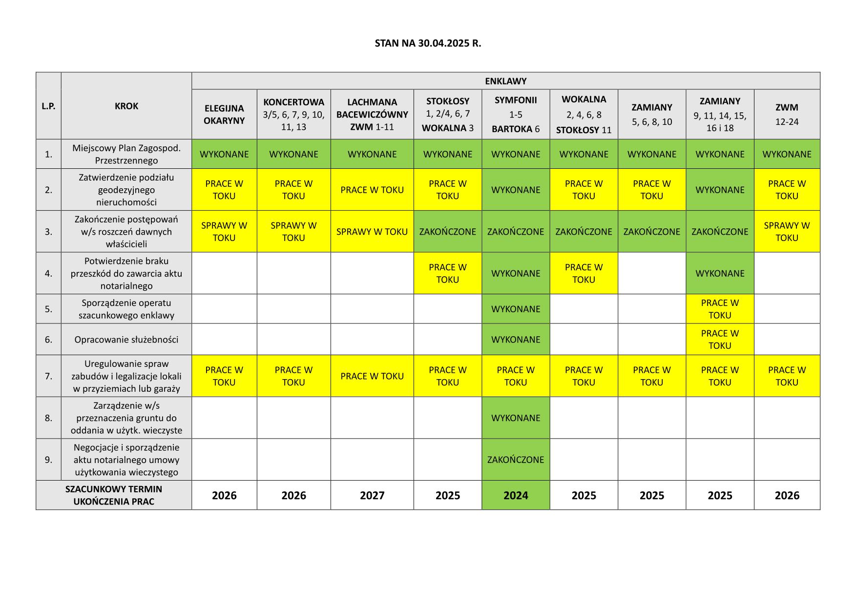 Informacja o regulacji gruntów w enklawach, stan na 30.04.2025r.
