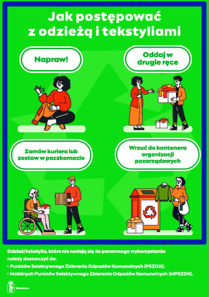 Jeśli odzież i tekstylia są zniszczone i nie nadają się do dalszego wykorzystania, oddaj je do PSZOK
