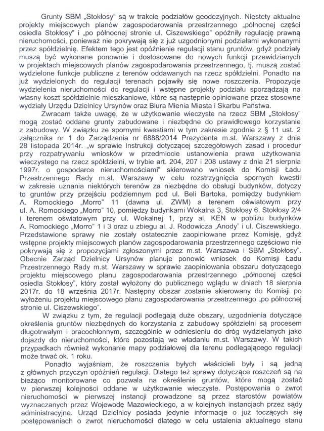Jednocześnie Zarząd SBM STOKŁOSY pragnie serdecznie podziękować Panu Radnemu za zaangażowanie i pomoc w tej jakże istotnej dla wszystkich mieszkańców naszej Spółdzielni sprawie, jaką jest regulacja stanu prawnego gruntów, na których zrealizowane zostało Osiedle STOKŁOSY.