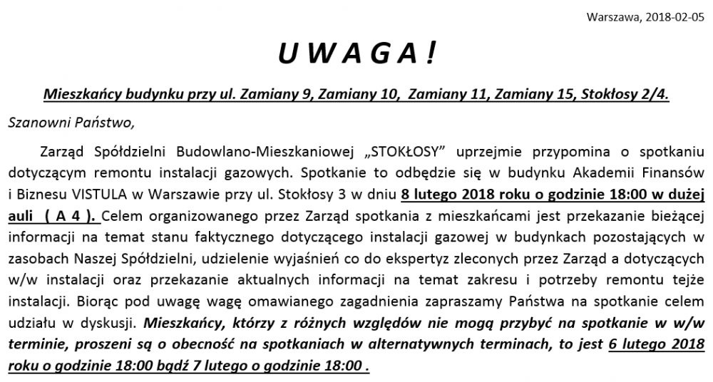 SZANOWNI MIESZKAŃCY!