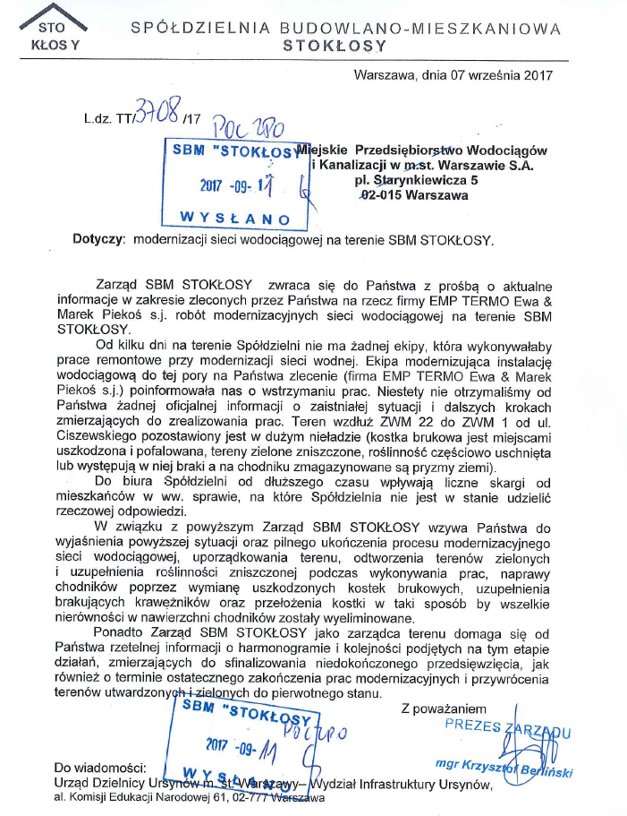 BIEŻĄCA INFORMACJA O MODERNIZACJI SIECI WODOCIĄGOWEJ PRZY UL. ZWM